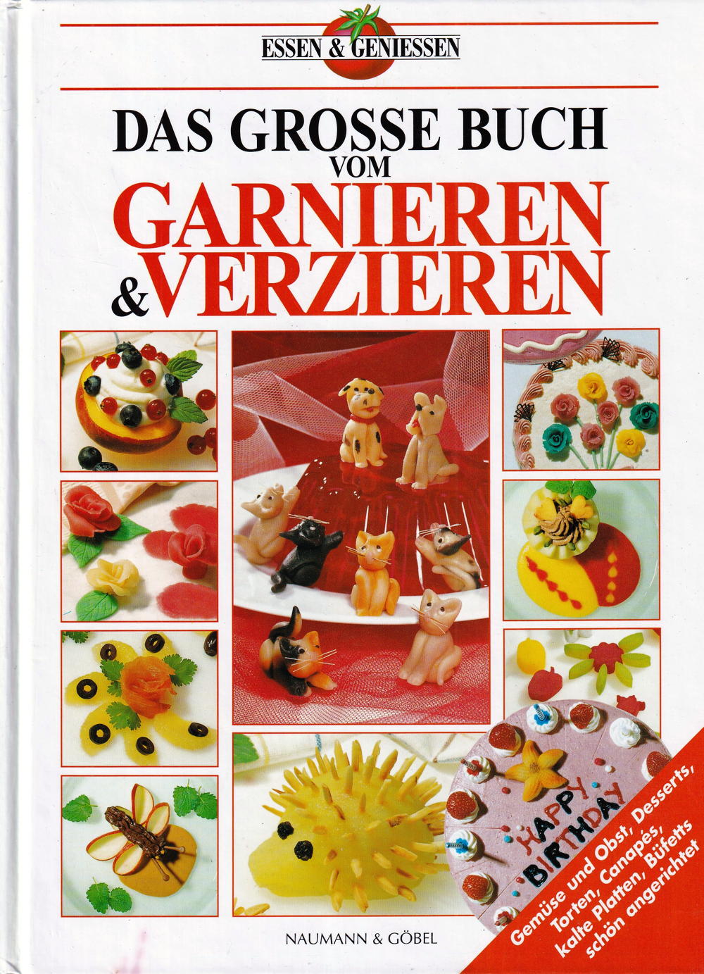 Gemüse und Obst, Desserts, Torten, Canapés, kalte Platten, Büfetts schön angerichtet.