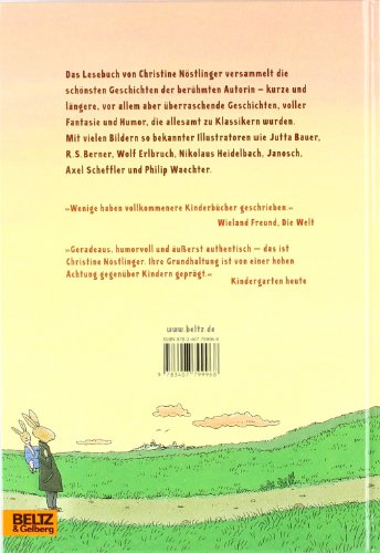 Das Lesebuch von Christine Nöstlinger versammelt die schönsten Geschichten der berühmten Autorin, in dem Kenner und Kinder ihre Lieblingsgeschichten wieder finden werden. Eine erweiterte Neuausgabe - mit vielen farbigen Bildern von so grossen Kinderbuch-Illustratoren wie Jutta Bauer, Axel Scheffler und Philip Waechter.