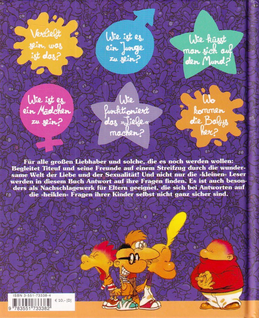 Für alle grossen Liebhaber und solche, die es noch werden wollen: Begleitet Titeuf und seine Freunde auf einem Streifzug durch die wundersame Welt der Liebe und der Sexualität! Und nicht nur die »kleinen« Leser werden in diesem Buch Antwort auf ihre Fragen finden. Es ist auch besonders als Nachschlagewerk für Eltern geeignet, die sich bei Antworten auf die »heiklen« Fragen ihrer Kinder selbst nicht ganz sicher sind.