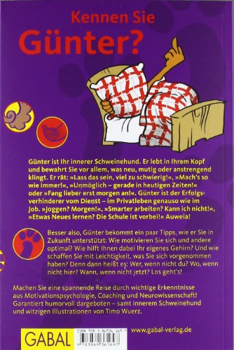 Kennen Sie Günter? Günter ist Ihr innerer Schweinehund. Er lebt in Ihrem Kopf und bewahrt Sie vor allem, was neu, mutig oder anstrengend klingt. „Mach es so wie immer!“ und „Fang lieber erst morgen an!“. Günter ist der Erfolgsverhinderer vom Dienst. Besser also, Günter bekommt ein paar Tipps, wie er Sie in Zukunft unterstützt: Wie motivieren Sie sich und andere optimal? Wie entfesseln Sie Ihre inneren Kräfte? Wie unterstützt Sie dabei Ihr eigenes Gehirn? Und wie schaffen Sie mit Leichtigkeit, was Sie sich vorgenommen haben?