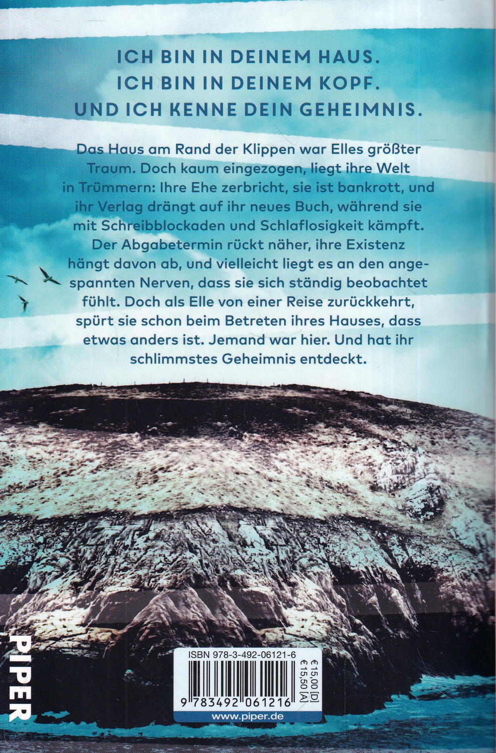 Das Haus am Rand der Klippen war Elles grösster Traum. Doch kaum eingezogen, liegt ihre Welt in Trümmern: Ihre Ehe zerbricht, sie ist bankrott, und ihr Verlag drängt auf ihr neues Buch, während sie mit Schreibblockaden und Schlaflosigkeit kämpft. Der Abgabetermin rückt näher, ihre Existenz hängt davon ab, und vielleicht liegt es an den angespannten Nerven, dass sie sich ständig beobachtet fühlt. Doch als Elle von einer Reise zurückkehrt, spürt sie schon beim Betreten ihres Hauses, dass etwas anders ist. Jemand war hier. Und hat ihr schlimmstes Geheimnis entdeckt.
