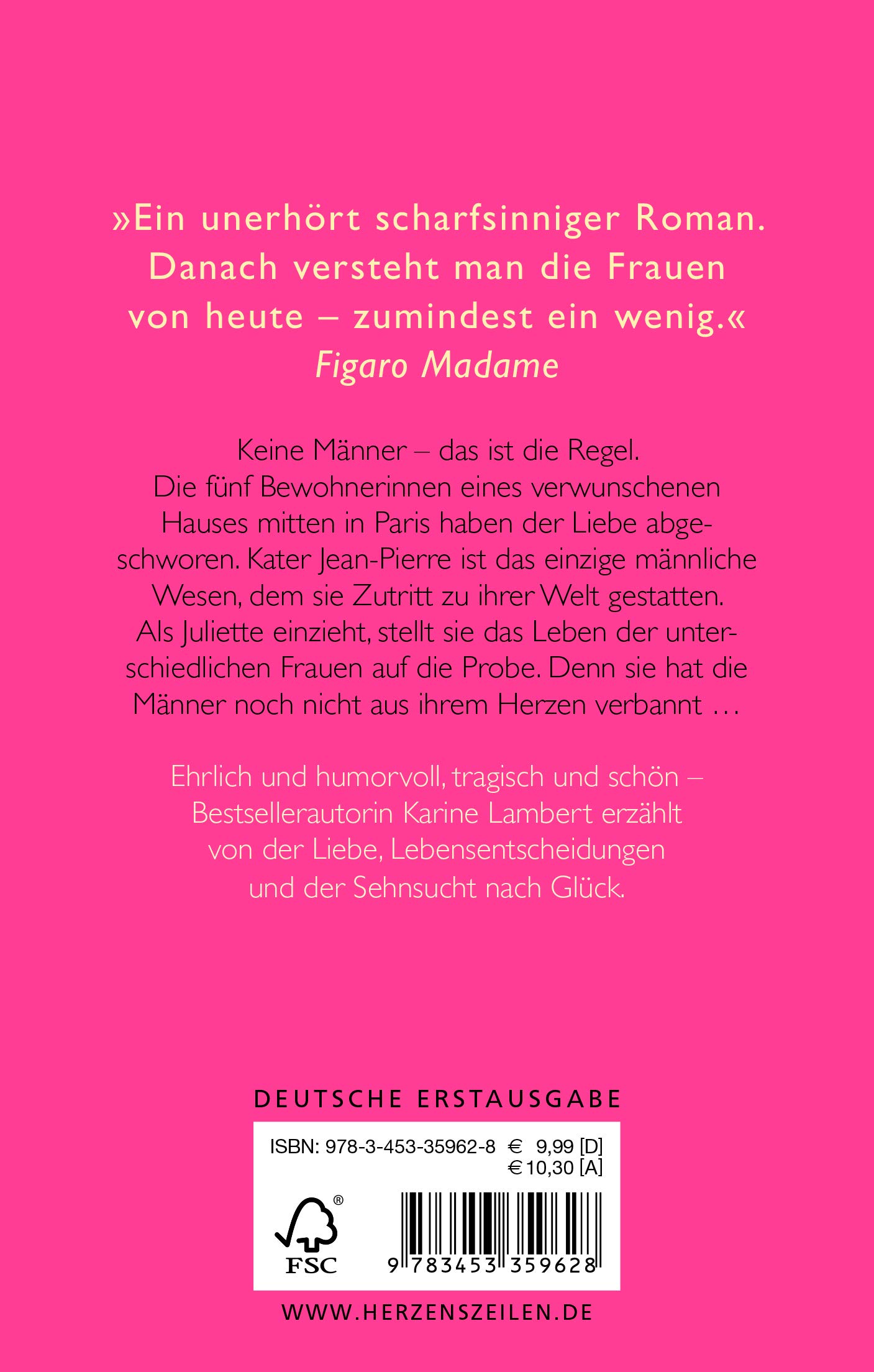Keine Männer - das ist die Regel. Die Bewohnerinnen eines verwunschenen Hauses mitten in Paris haben der Liebe abgeschworen. Kater Jean-Pierre ist das einzige männliche Wesen, dem sie Zutritt zu ihrer Welt gestatten. Als die junge Juliette einzieht, stellt sie das Leben der unterschiedlichen Frauen auf die Probe. Denn sie hat die Liebe noch nicht aus ihrem Herzen verbannt ...