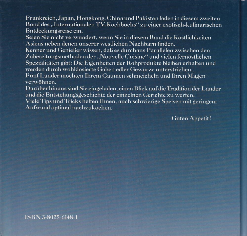 Frankreich, Japan, Hongkong, China und Pakistan laden in diesem zweiten Band des „Internationalen TV-Kochbuchs“zu einer exotisch-kulinarischen Entdeckungsreise ein.