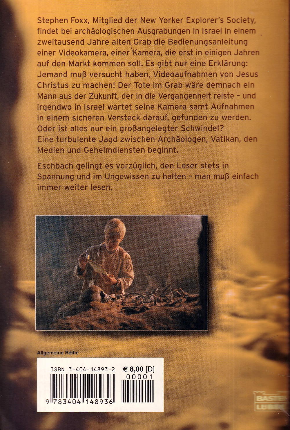 Kurz vor der Jahrtausendwende lässt uns Andreas Eschbach einen Blick in die Zukunft werfen. Er dreht aber die Uhren zurück: Wie kommt die Bedienungsanleitung für eine Videokamera in ein 2000 Jahre altes Grab in Israel?