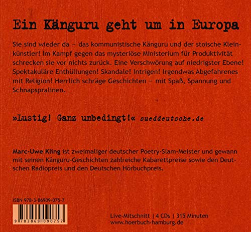 Sie sind wieder da - das kommunistische Känguru und der stoische Kleinkünstler! Auf der Jagd nach dem höchstverdächtigen Pinguin rasen sie durch die ganze Welt. Spektakuläre Enthüllungen! Skandale! Intrigen! Ein Mord, für den sich niemand interessiert! Eine Verschwörung auf niedrigster Ebene! Ein völlig abstruser Weltbeherrschungsplan! Mit Spass, Spannung und Schnapspralinen...