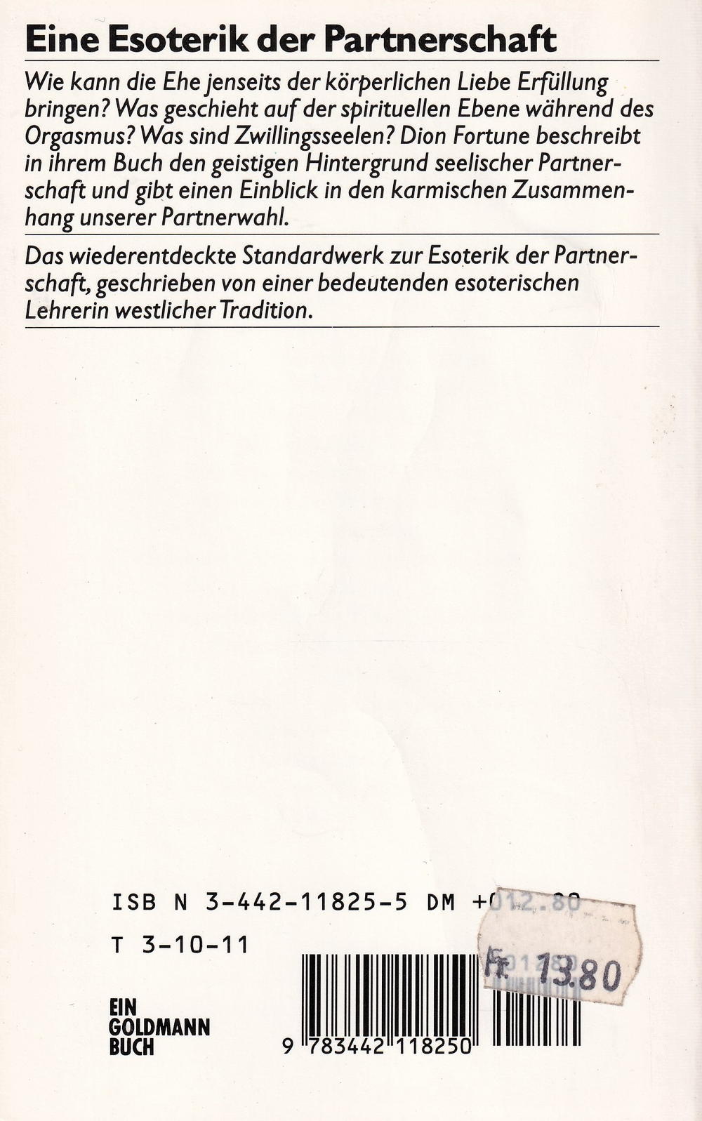 Wie kann die Ehe jenseits der körperlichen Liebe Erfüllung bringen? Was geschieht auf der spirituellen Ebene während des Orgasmus? Was sind Zwillingsseelen? Dion Fortune beschreibt in ihrem Buch den geistigen Hintergrund seelischer Partnerschaft und gibt einen Einblick in den karmischen Zusammenhang unserer Partnerwahl.