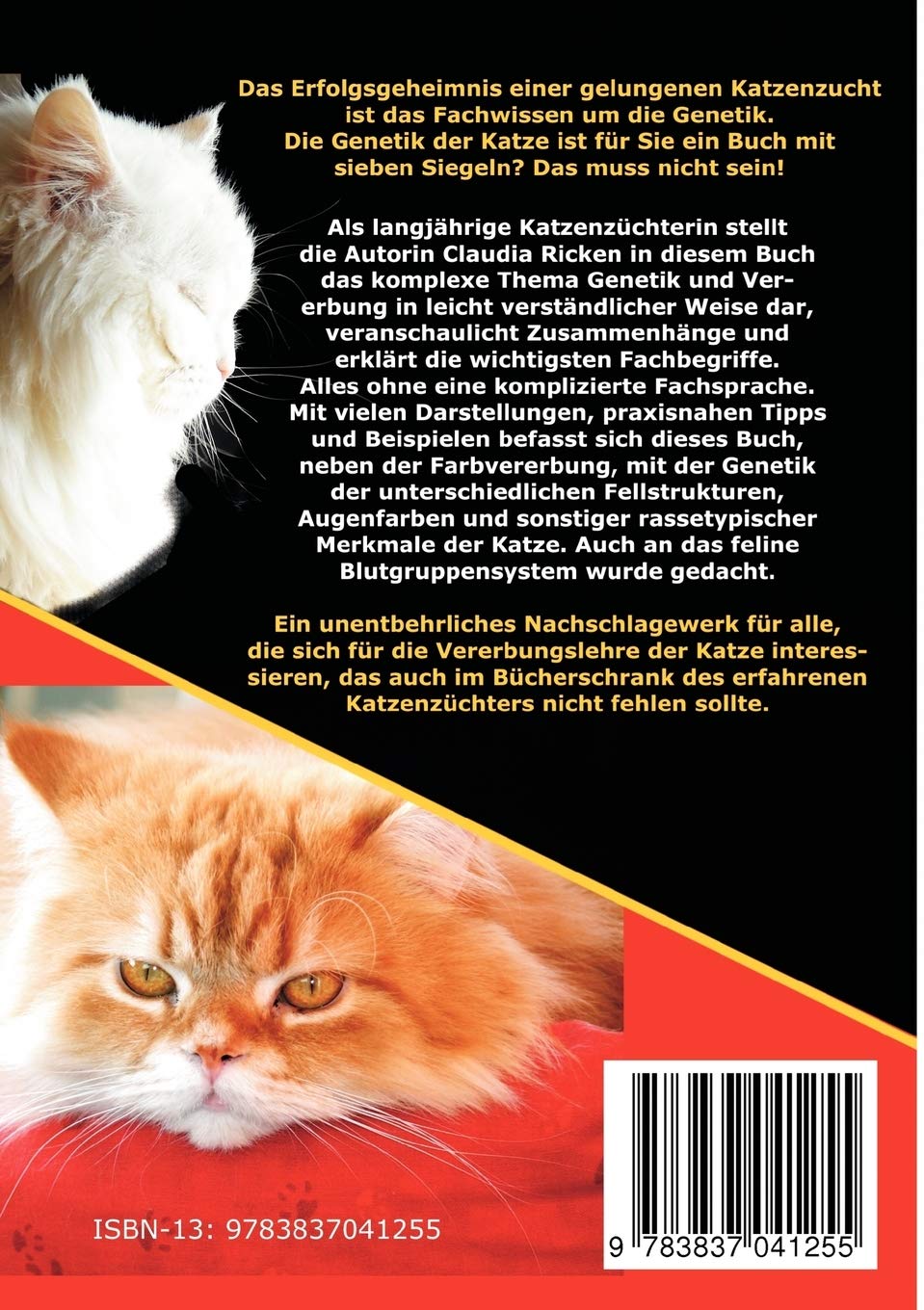 Die Autorin Claudia Ricken züchtet seit über 20 Jahren Katzen. In diesem Buch vermittelt sie eine gelungene Mischung aus genetischem Hintergrundwissen und praktischen Hinweisen. Das komplexe Thema Genetik und Vererbung wird in leicht verständlicher Weise dargestellt, Zusammenhänge veranschaulicht und die wichtigsten Fachbegriffe erklärt. Dabei kommt die Autorin ohne eine komplizierte Fachsprache aus.