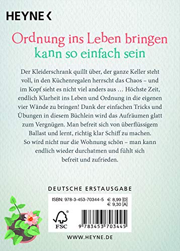 Der Kleiderschrank quillt über, der ganze Keller ist voll mit unbenutztem Zeug, in den Küchenregalen herrscht das Chaos - und im Kopf sieht es nicht viel anders aus ... Höchste Zeit, endlich Ordnung in die eigenen vier Wände zu bringen! Wie schnell und effektiv das möglich ist, zeigt dieses kleine, wunderschön gestaltete Büchlein. Dank der einfachen Tricks und Übungen wird das Aufräumen glatt zum Vergnügen. Man befreit sich von überflüssigem Ballast und lernt, richtig klar Schiff zu machen. So wird nicht nur die Wohnung schön - man kann endlich wieder durchatmen und fühlt sich befreit und zufrieden.