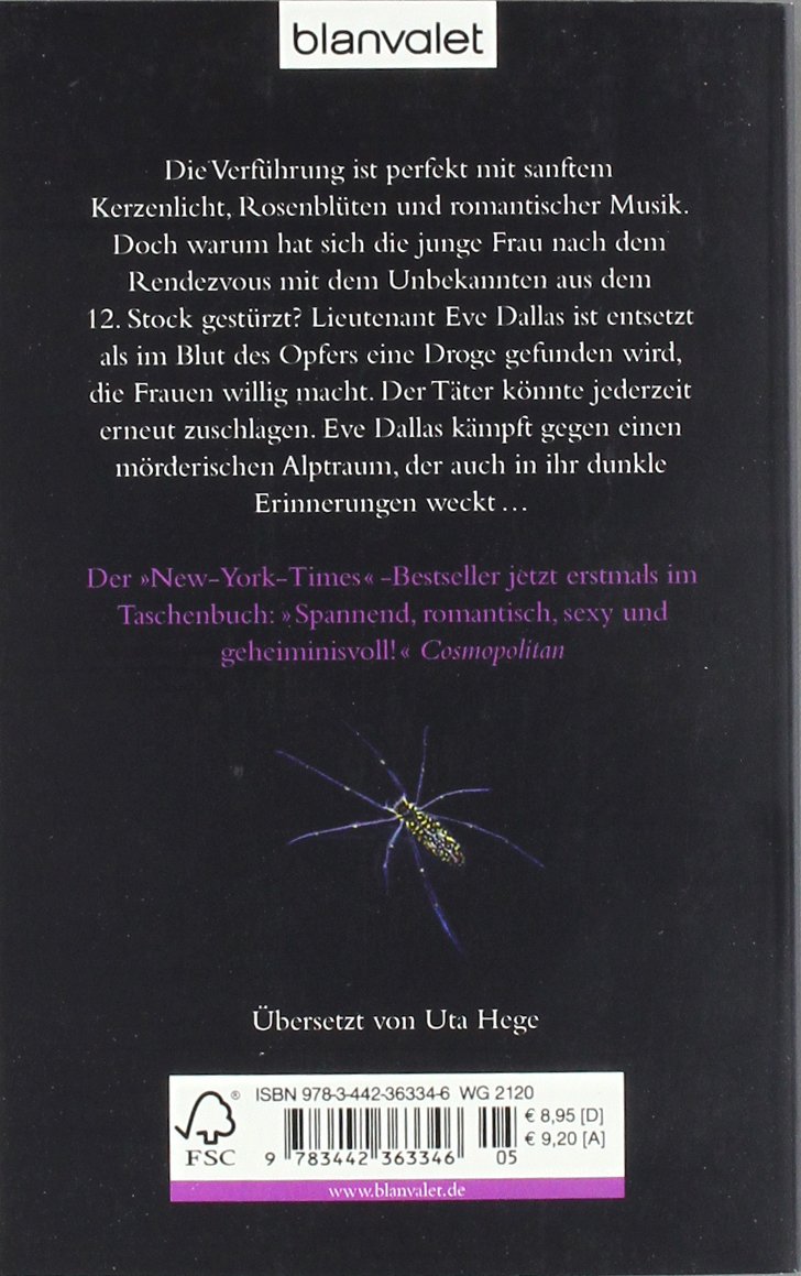 Die Verführung war perfekt – sanftes Kerzenlicht, romantische Musik, Rosenblüten auf dem Bett. Doch warum hat sich die junge Frau nach dem Rendezvous mit dem unbekannten aus dem 12. Stock des Apartmenthauses gestürzt? Eve Dallas zweifelt stark an der Selbstmord-Theorie, denn im Blut des Opfers wird eine gefährliche Substanz festgestellt. Eine Droge, die Frauen willig macht. Das Verbrechen bereitet Eve schlaflose Nächte, denn jeden Moment könnte der Täter wieder zuschlagen. Und die grausame Tat des Killers reißt alte Wunden wieder auf, die Eve seit ihrer Kindheit um jeden Preis vergessen möchte …