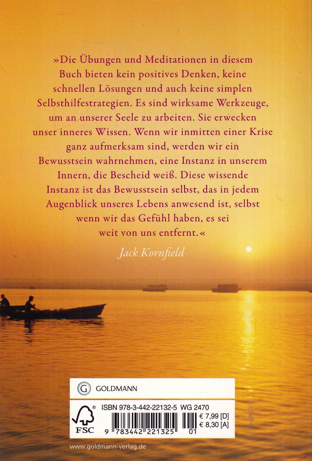 Schwierigkeiten, Ängste, Verlust, Trauer: Manchmal sind wir mit dunklen Lebensphasen konfrontiert, in denen wir leicht den Mut verlieren können. Ignorieren oder Weglaufen sind keine Lösung, sondern verschlimmern die Probleme. Die kleinen Übungen und Meditationen von Jack Kornfield helfen, sich den Herausforderungen zu stellen und zu akzeptieren, was ist. Wenn wir unseren Lebensumständen mit Geduld und Mitgefühl begegnen, werden sie uns letztlich zum eigenen Licht, zu Gelassenheit, Weisheit und innerem Frieden führen. Das Buch erschien ursprünglich unter dem Titel Das innere Licht entdecken als gebundenes Buch im Kösel-Verlag.