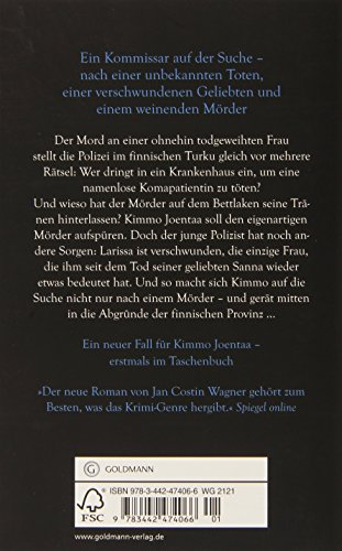 Der Mord an einer ohnehin todgeweihten Frau stellt die Polizei im finnischen Turku gleich vor mehrere Rätsel: Wer dringt in ein Krankenhaus ein, um eine namenlose Komapatientin zu töten? Und wieso hat der Mörder auf dem Bettlaken seine Tränen hinterlassen? Kimmo Joentaa soll den eigenartigen Mörder aufspüren. Doch der junge Polizist hat andere Sorgen: Larissa ist verschwunden, die einzige Frau, die ihm seit dem Tod seiner geliebten Sanna wieder etwas bedeutet hat. Und so macht sich Kimmo auf die Suche – nach einer unbekannten Toten, einer verschwundenen Geliebten und einem weinenden Mörder...