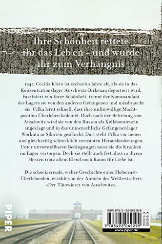 1942: Cecilia Klein ist sechzehn Jahre alt, als sie in das Konzentrationslager Auschwitz-Birkenau deportiert wird. Fasziniert von ihrer Schönheit, trennt der Kommandant des Lagers sie von den anderen Gefangenen und missbraucht sie regelmässig. Cilka lernt schnell, dass ihre unfreiwillige Machtposition Überleben bedeutet. Doch nach der Befreiung von Auschwitz wird Cilka von den Russen als Kollaborateurin angeklagt und in das brutale Gefangenenlager Workuta in Sibirien geschickt. Dort steht sie vor neuen und gleichzeitig schrecklich vertrauten Herausforderungen. Unter unvorstellbaren Bedingungen muss sie die Kranken im Lager versorgen. Doch sie stellt auch fest, dass in ihrem Herzen trotz allem Elend noch Raum für Liebe ist. »Die Vergangenheit gibt ihre Geheimnisse nie leicht preis. Aber Geschichten wie die von Cilka verdienen es, erzählt zu werden. Sie war nur ein kleines Mädchen, wurde dann aber zur mutigsten Person, die Lale Sokolov je getroffen hat.