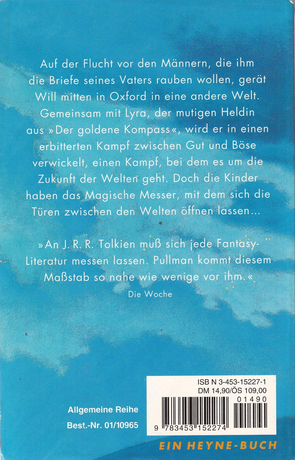 Auf der Suche nach seinem Vater gerät Will mitten in Oxford in eine andere Welt. Gemeinsam mit Lyra wird er in einen erbitterten Kampf zwischen Gut und Böse verwickelt.