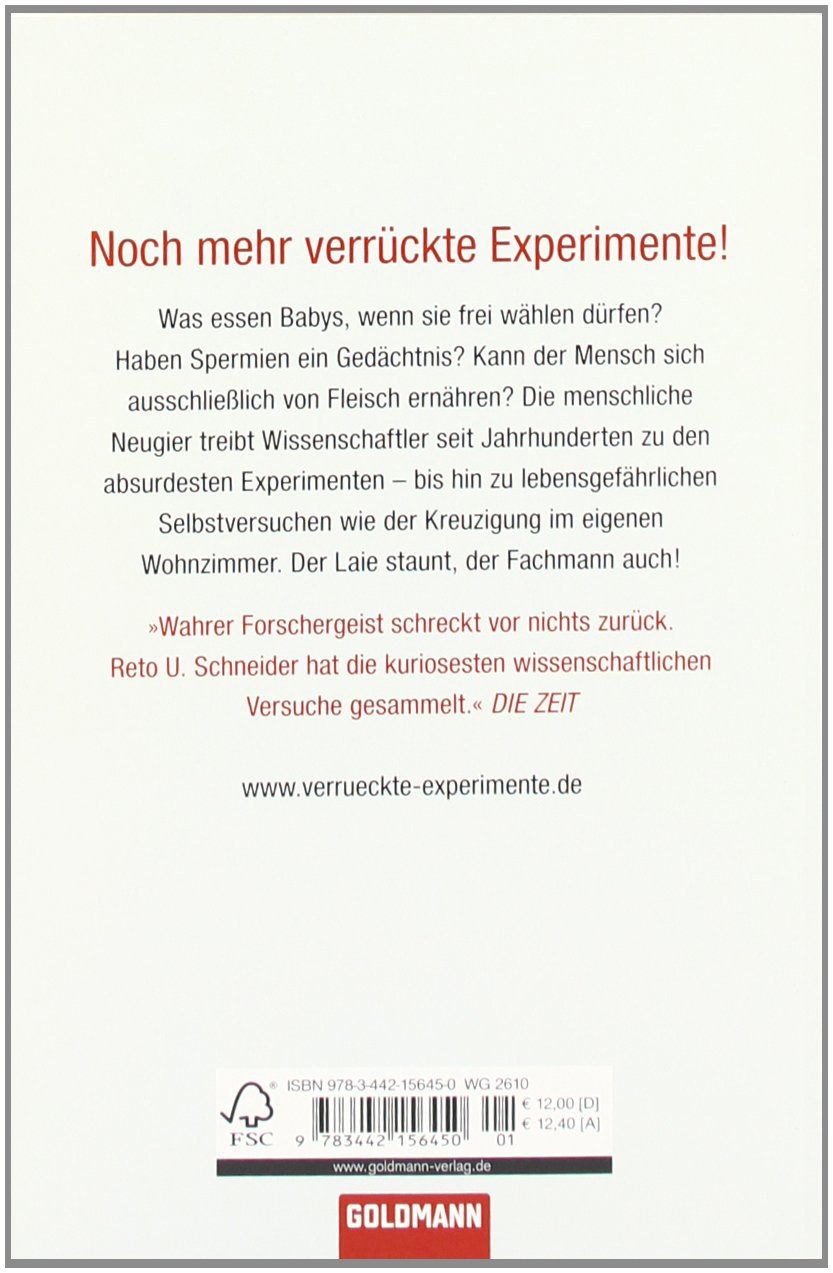 Was essen Babys, wenn sie frei wählen dürfen? Haben Spermien ein Gedächtnis? Kann der Mensch sich ausschließlich von Fleisch ernähren, ohne Mangelerscheinungen zu erleiden? Die menschliche Neugier treibt Wissenschaftler seit Jahrhunderten zu den absurdesten Versuchsanordnungen, die auch vor lebensgefährlichen Selbstversuchen nicht immer haltmachen. Rund hundert der verrücktesten, komischsten, kuriosesten und tragischsten Experimente beschreibt der Schweizer Wissenschaftsjournalist Reto U. Schneider in seiner neuen Sammlung wissenschaftlicher Kuriositäten. Der Laie staunt, der Fachmann wundert sich!