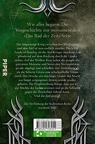 Der langwierige Krieg zwischen den Westlanden und den Aiel ist nun endlich vorüber. Doch der Friede ist brüchig, als die Aiel-Krieger mordend und plündernd auf dem Rückzug durch die Länder ziehen. Auf der Weissen Burg haben die jungen Magierinnen Moiraine und Siuan den Novizenstatus gerade abgelegt und schliessen ihre Ausbildung ab, als die Seherin Gitara eine schicksalhafte Vision ereilt: Der Drache, ein mächtiger Lenker der Macht aus längst vergangenen Zeiten, wurde wiedergeboren. Die Prophezeihung besagt, dass nur er die Mächte des Lichts vereinen und in die Schlacht gegen die Dunkelheit führen kann. Und die Zeit drängt.