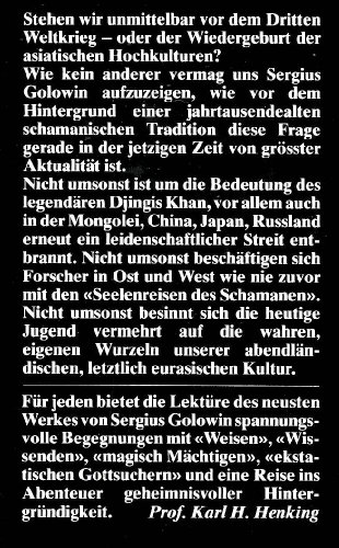 Nicht umsonst ist um die Bedeutung des legendären Djingis Khan, vor allem auch in der Mongolei, China, Japan, Russland erneut ein leidenschaftlicher Streit entbrannt. Nicht umsonst beschäftigen sich Forscher in Ost und West wie nie zuvor mit den «Seelenreisen des Schamanen».