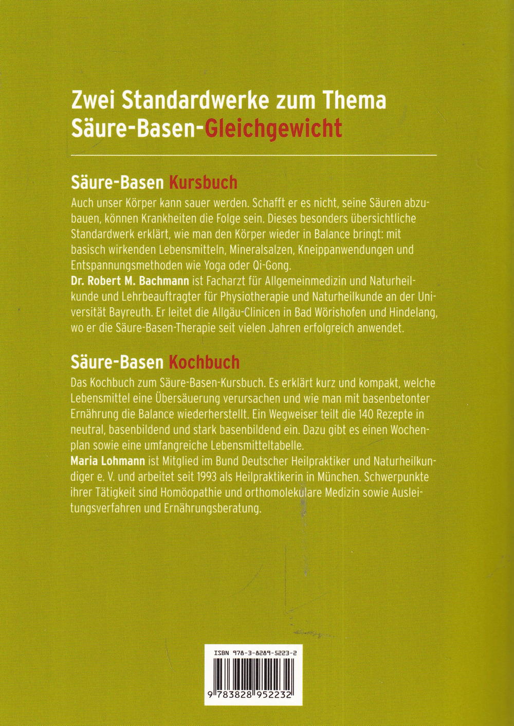 Säure-Basen Kochbuch Das Kochbuch zum Säure-Basen-Kursbuch. Es erklärt kurz und kompakt, welche Lebensmittel eine Übersäuerung verursachen und wie man mit basenbetonter Ernährung die Balance wiederherstellt. Ein Wegweiser teilt die 140 Rezepte in neutral, basenbildend und stark basenbildend ein. Dazu gibt es einen Wochenplan sowie eine umfangreiche Lebensmitteltabelle.