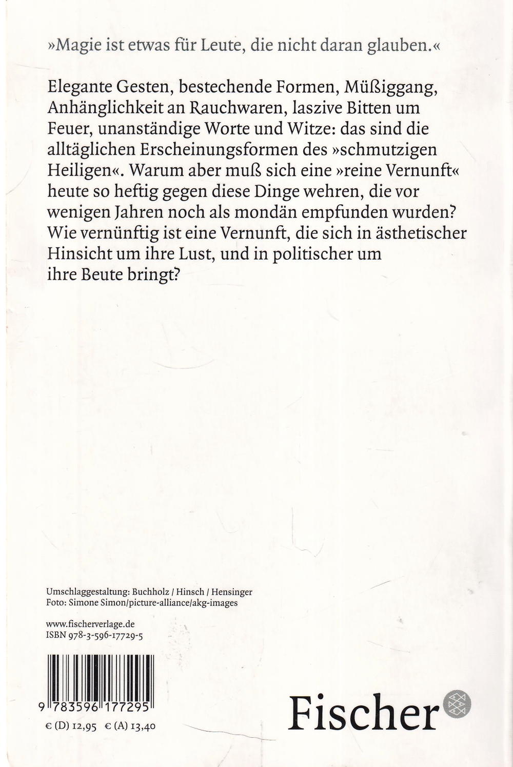 Vieles, was noch vor wenigen Jahren als mondän galt wie z.B. das Rauchen, wird in unserer heutigen Kultur als schmutziges, gesundheitsgefährdendes Ärgernis thematisiert. Früher wurden solche Praktiken kulturell aufgehoben, indem man sie in einen Rahmen des "Heiligen" stellte. Gegen dieses "Heilige" macht nun eine Vernunft Front, die sich als "rein" versteht und die Welt entzaubern möchte.