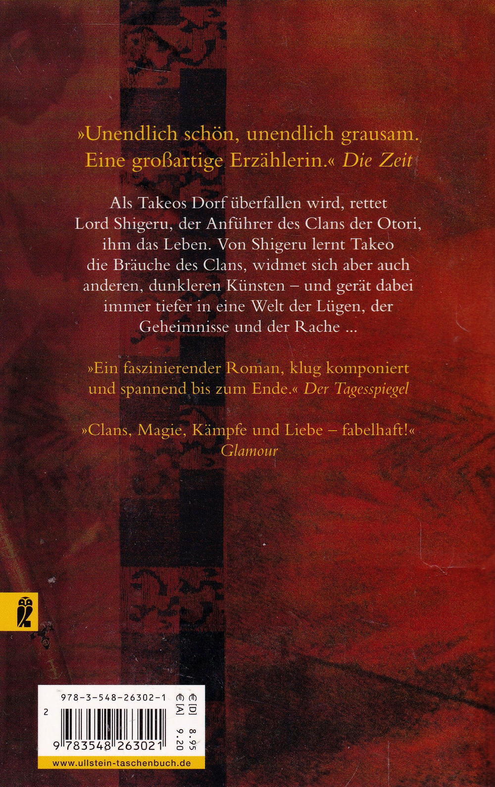 Es geschah im letzten Tageslicht, im Regen. Bislang hatte Takeo nicht gewusst, was Menschen einander antun können, nichts von den wilden Schlachten der Clans. Doch dann wird seine Familie ermordet und er selbst entkommt dem Tod nur knapp. Otori Shigeru vom Clan der Otori ist es, der ihn rettet - mit dem Schlangenschwert in der Hand. Von ihm lernt Takeo die Bräuche der Clans. Dabei gerät er immer tiefer in eine Welt der Lügen, der Geheimnisse und der Rache... Ein romantisches Abenteuer aus dem feudalen Japan!