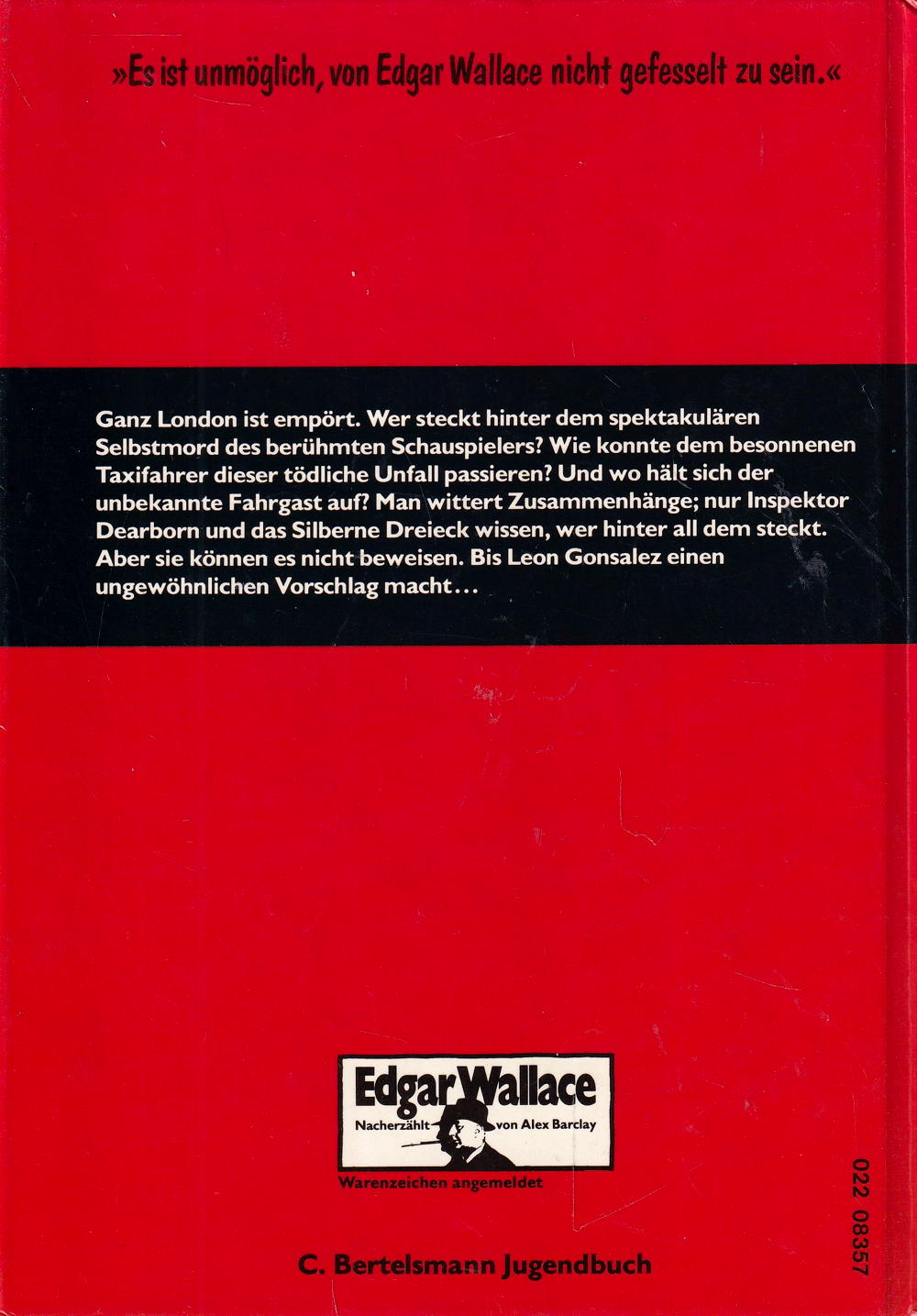 Ganz London ist empört. Wer steckt hinter dem spektakulären Selbstmord des berühmten Schauspielers? Wie konnte dem besonnenen Taxifahrer dieser tödliche Unfall passieren? Und wo hält sich der unbekannte Fahrgast auf? Man wittert Zusammenhänge; nur Inspektor Dearborn und das Silberne Dreieck wissen, wer hinter all dem steckt.