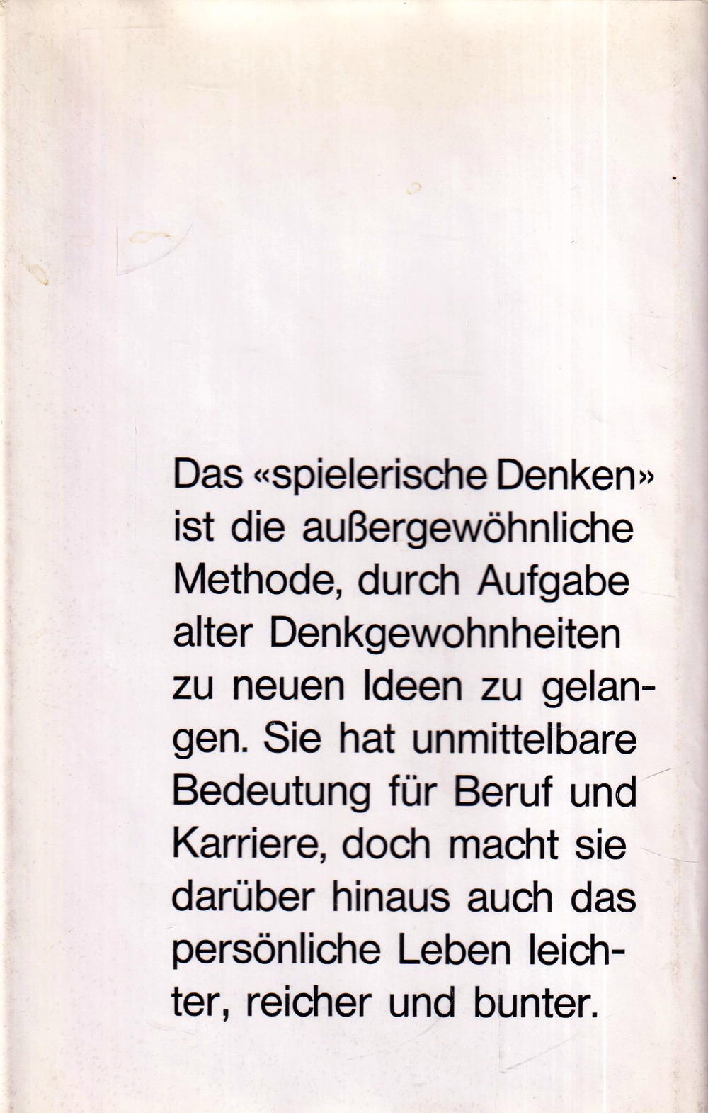 Das «spielerische Denken» ist die aussergewöhnliche Methode, durch Aufgabe alter Denkgewohnheiten zu neuen Ideen zu gelangen. Sie hat unmittelbare Bedeutung für Beruf und Karriere, doch macht sie darüber hinaus auch das persönliche Leben leichter, reicher und bunter.