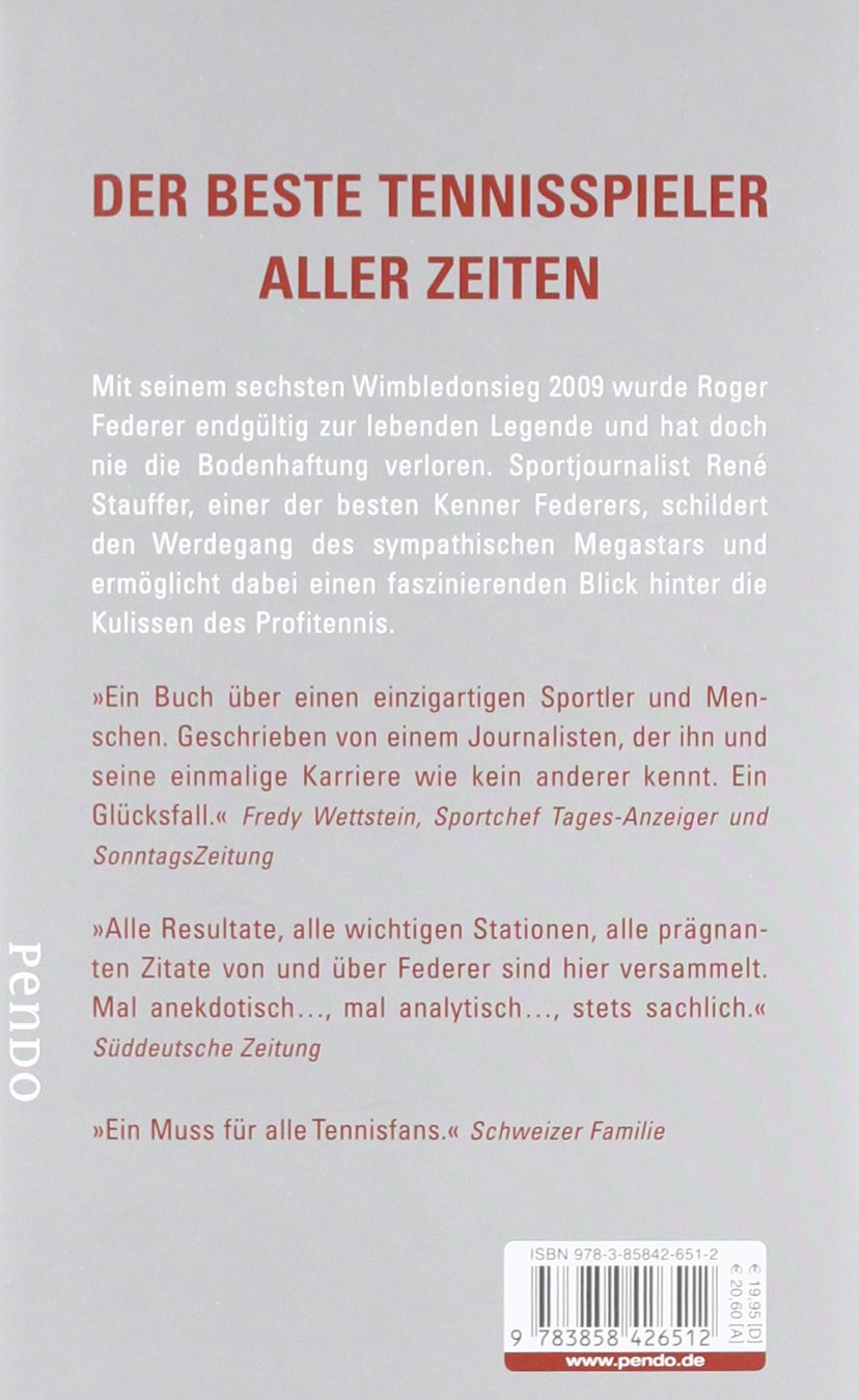 Im Sommer 2009 wurde Roger Federer endgültig zum erfolgreichsten Tennisspieler der Geschichte. In Roland Garros triumphierte er erstmals auch an den French Open, und nur wenig später verbesserte er in Wimbledon mit seinem 15. Grand-Slam-Titel den wichtigsten Rekord in seinem Sport. Seine Spielstärke ist gefürchtet, seine Technik auf einzigartige Weise kreativ und seine Konstanz als Spitzenspieler unerreicht. So belegte er viereinhalb Jahre ohne Unterbrechung den ersten Platz der Weltrangliste und wurde 2008 zum vierten Mal zum Weltsportler des Jahres gekürt. Von Federers Kindheit bis zu seiner Heirat mit Mirka Vavrinec und der Geburt ihrer Zwillinge, von seinen wichtigsten Erfolgen und unvermeidlichen Rückschlägen bis zu seinem Durchbruch als Seriensieger- diese Biografie bietet jede Menge Überraschendes und Neues über den Star ohne Allüren und über die Menschen an seiner Seite.