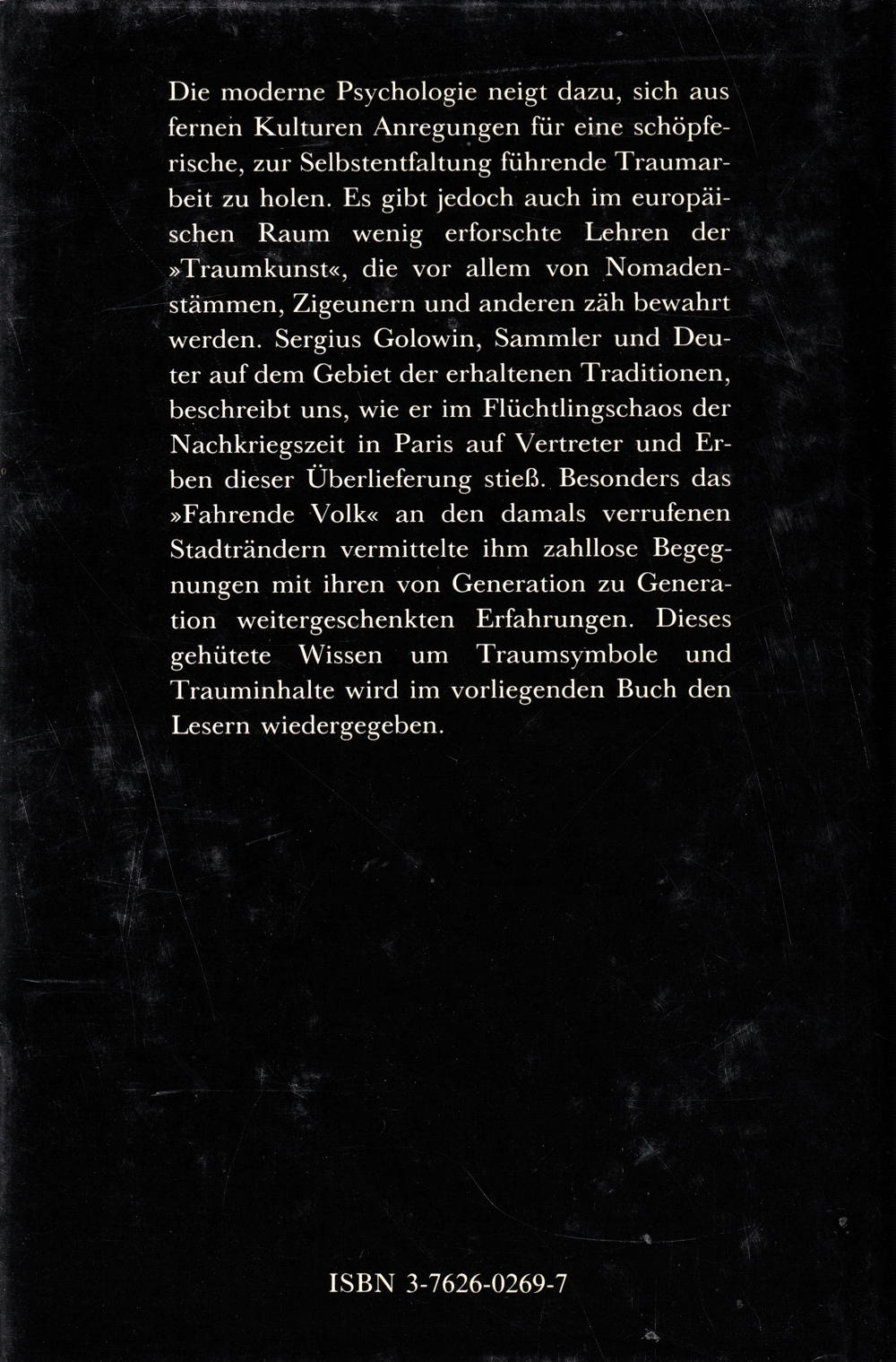 Die moderne Psychologie neigt dazu, sich aus fernen Kulturen Anregungen für eine schöpferische, zur Selbstentfaltung führende Traumarbeit zu holen. Es gibt jedoch auch im europäischen Raum wenig erforschte Lehren der »Traumkunst«, die vor allem von Nomadenstämmen, Zigeunern und anderen zäh bewahrt werden. Sergius Golowin, Sammler und Deuter auf dem Gebiet der erhaltenen Traditionen, beschreibt uns, wie er im Flüchtlingschaos der Nachkriegszeit in Paris auf Vertreter und Erben dieser Überlieferung stiess. Besonders das »Fahrende Volk« an den damals verrufenen Stadträndern vermittelte ihm zahllose Begegnungen mit ihren von Generation zu Generation weitergeschenkten Erfahrungen. Dieses gehütete Wissen um Traumsymbole und um Trauminhalte wird im vorliegenden Buch den Lesern wiedergegeben.