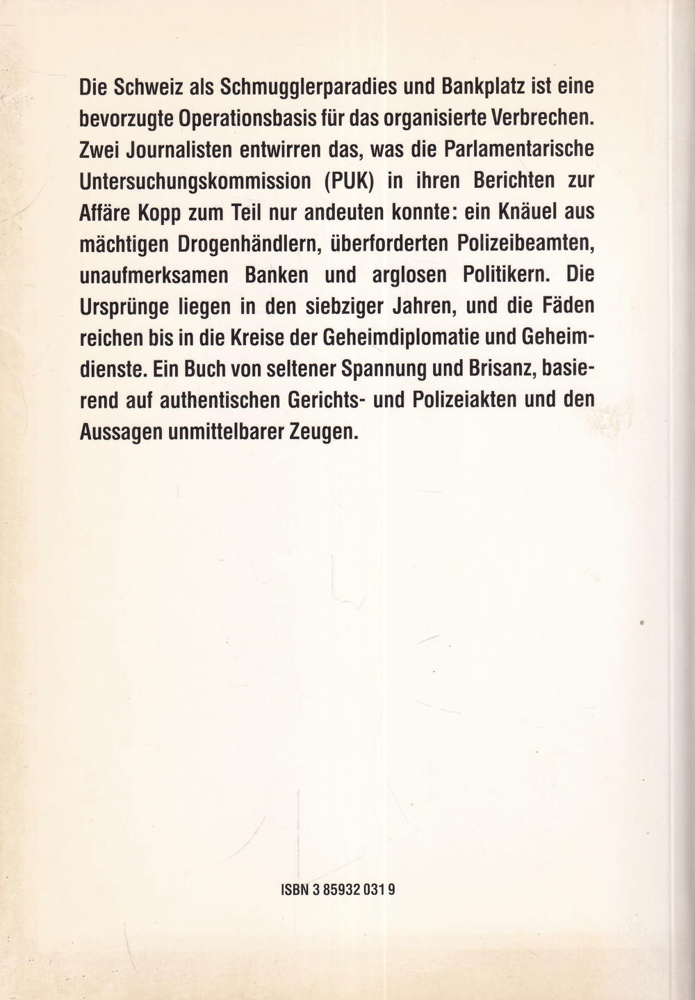 Zwei Journalisten entwirren das, was die Parlamentarische Untersuchungskommission (PUK) in ihren Berichten zur Affäre Kopp zum Teil nur andeuten konnte: ein Knäuel aus mächtigen Drogenhändlern, überforderten Polizeibeamten, unaufmerksamen Banken und arglosen Politikern. Die Ursprünge liegen in den siebziger Jahren, und die Fäden reichen bis in die Kreise der Geheimdiplomatie und Geheimdienste. Ein Buch von seltener Spannung und Brisanz, basierend auf authentischen Gerichts- und Polizeiakten und den Aussagen unmittelbarer Zeugen.