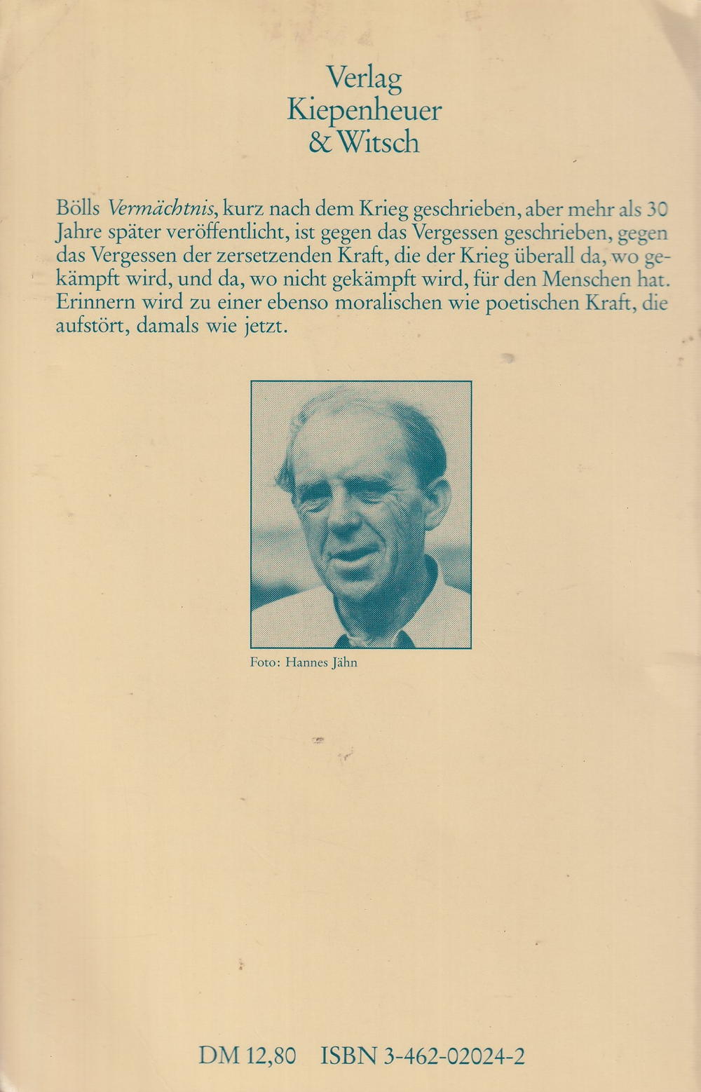 Bölls Vermächtnis, kurz nach dem Krieg geschrieben, aber mehr als 30 Jahre später veröffentlicht, ist gegen das Vergessen geschrieben, gegen das Vergessen der zersetzenden Kraft, die der Krieg überall da, wo gekämpft wird, und da, wo nicht gekämpft wird, für den Menschen hat. Erinnern wird zu einer ebenso moralischen wie poetischen Kraft, die aufstört, damals wie jetzt.