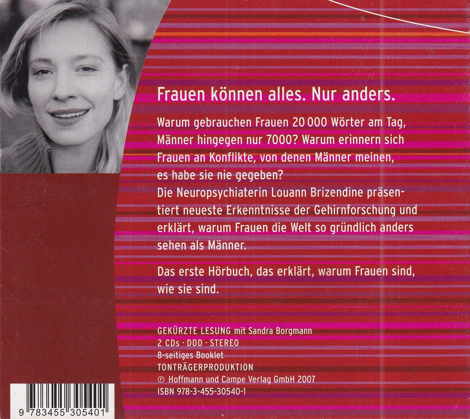 Warum gebrauchen Frauen 20 000 Wörter am Tag, Männer hingegen nur 7000? Warum erinnern sich Frauen an Konflikte, von denen Männer meinen, es habe sie nie gegeben? Die Neuropsychiaterin Louann Brizendine präsentiert neueste Erkenntnisse der Gehirnforschung und erklärt, warum Frauen die Welt so gründlich anders sehen als Männer.
