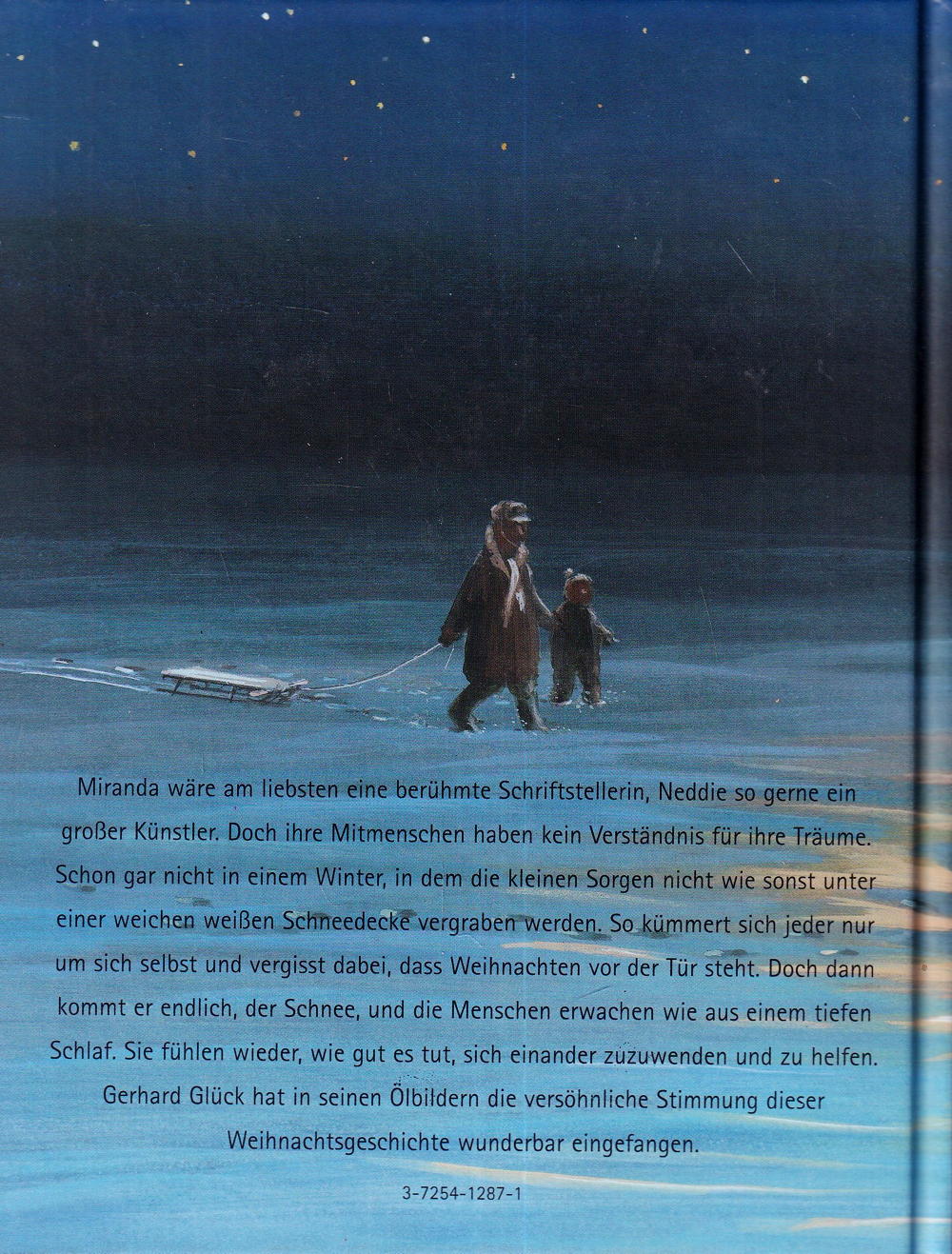 Miranda wäre am liebsten eine berühmte Schriftstellerin, Neddie so gerne ein grosser Künstler. Doch ihre Mitmenschen haben kein Verständnis für ihre Träume. Schon gar nicht in einem Winter, in dem die kleinen Sorgen nicht wie sonst unter einer weichen weissen Schneedecke vergraben werden. So kümmert sich jeder nur um sich selbst und vergisst dabei, dass Weihnachten vor der Tür steht. Doch dann kommt er endlich, der Schnee, und die Menschen erwachen wie aus einem tiefen Schlaf. Sie fühlen wieder, wie gut es tut, sich einander zuzuwenden und zu helfen.