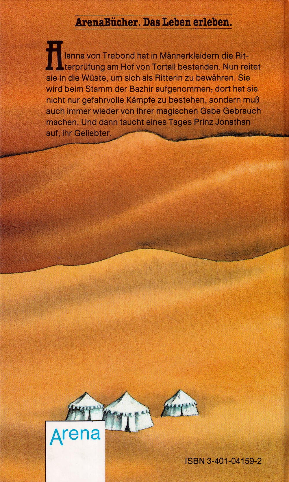Alanna von Trebond hat in Männerkleidern die Ritterprüfung am Hof von Tortall bestanden. Nun reitet sie in die Wüste, um sich als Ritterin zu bewähren. Sie wird beim Stamm der Bazhir aufgenommen; dort hat sie nicht nur gefahrvolle Kämpfe zu bestehen, sondern muss auch immer wieder von ihrer magischen Gabe Gebrauch machen. Und dann taucht eines Tages Prinz Jonathan auf, ihr Geliebter.