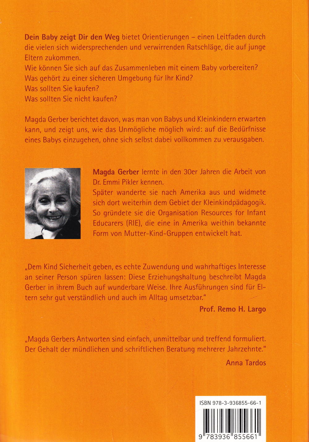 Die Bedürfnisse von Babys und Eltern erfüllen und dabei nicht ausgelaugt, sondern glücklich sein. Wer möchte das nicht? Magda Gerber beschreibt in ihrem neuen Buch Dein Baby zeigt Dir den Weg anschaulich den Schlüssel, der Eltern dabei helfen kann, ihre Kinder angemessen zu begleiten und in der Beziehung mit ihnen sich selbst besser kennenzulernen: Es ist der respektvolle Umgang mit dem Baby von Anfang an. In vielen Beispielen, von den alltäglichen Pflegesituationen bis zum freien Spiel, zeigt sie, wie Eltern liebevoll für ihre Kinder sorgen und ihnen gleichzeitig Raum für ihre eigenständige Entwicklung geben können.