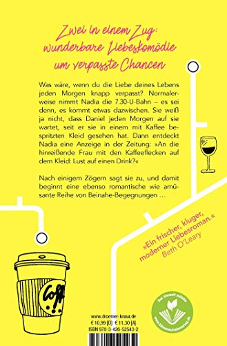Normalerweise nimmt die Londonerin Nadia die 7: 30-U-Bahn – es sei denn, sie verschläft oder übernachtet bei ihrer Freundin Emma oder es kommt eben sonst irgendetwas dazwischen. Schliesslich ahnt Nadia nicht, dass Daniel jeden Morgen auf sie wartet, seit er sie in einem mit Kaffee bespritzten Kleid gesehen und sich nicht getraut hat, sie anzusprechen. Dann entdeckt Nadia eines Tages eine Anzeige in der Zeitung: »An die hinreissende Frau mit den Kaffee-Flecken auf dem Kleid: Ich bin der Typ, der immer in der Nähe der Tür steht und darauf hofft, dich wiederzusehen. Lust auf einen Drink?«