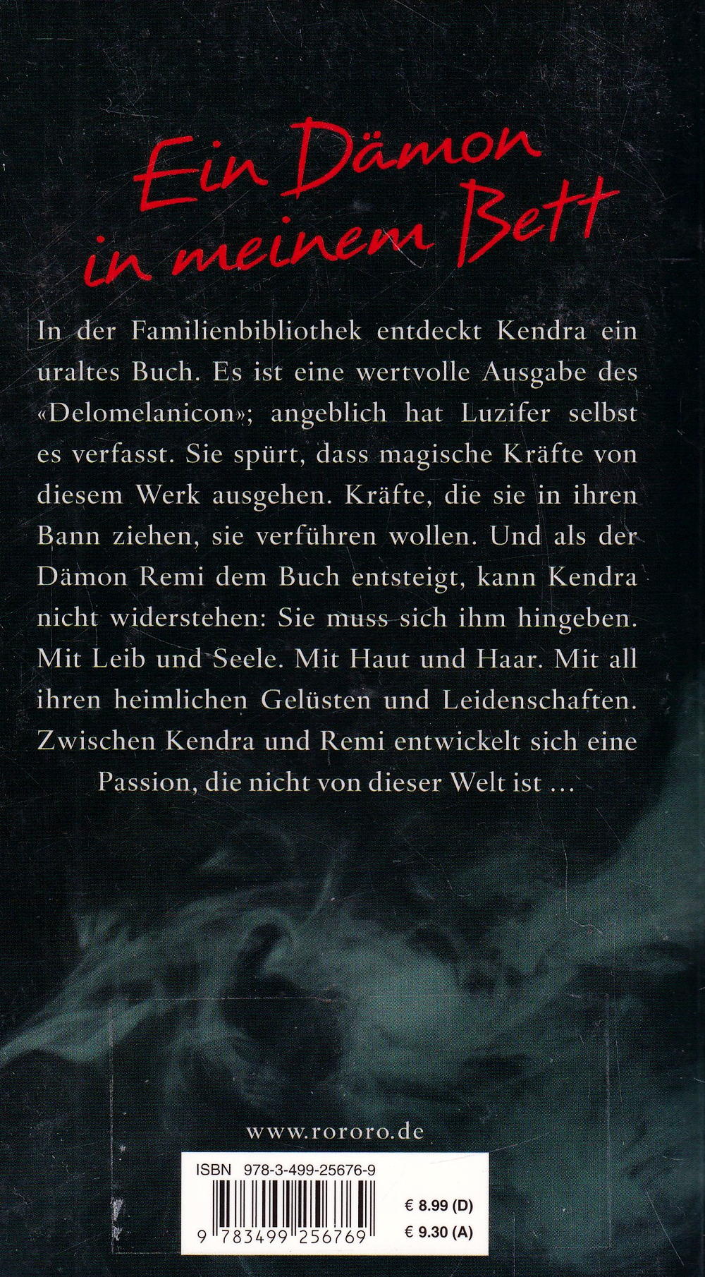 Ein Dämon in meinem Bett. In der Familienbibliothek entdeckt Kendra ein uraltes Buch. Es ist eine wertvolle Ausgabe des «Delomelanicon»; angeblich hat Luzifer selbst es verfasst. Sie spürt, dass magische Kräfte von diesem Werk ausgehen. Kräfte, die sie in ihren Bann ziehen, sie verführen wollen. Und als der Dämon Remi dem Buch entsteigt, kann Kendra nicht widerstehen: Sie muss sich ihm hingeben. Mit Leib und Seele. Mit Haut und Haar. Mit all ihren heimlichen Gelüsten und Leidenschaften. Zwischen Kendra und Remi entwickelt sich eine Passion, die nicht von dieser Welt ist …