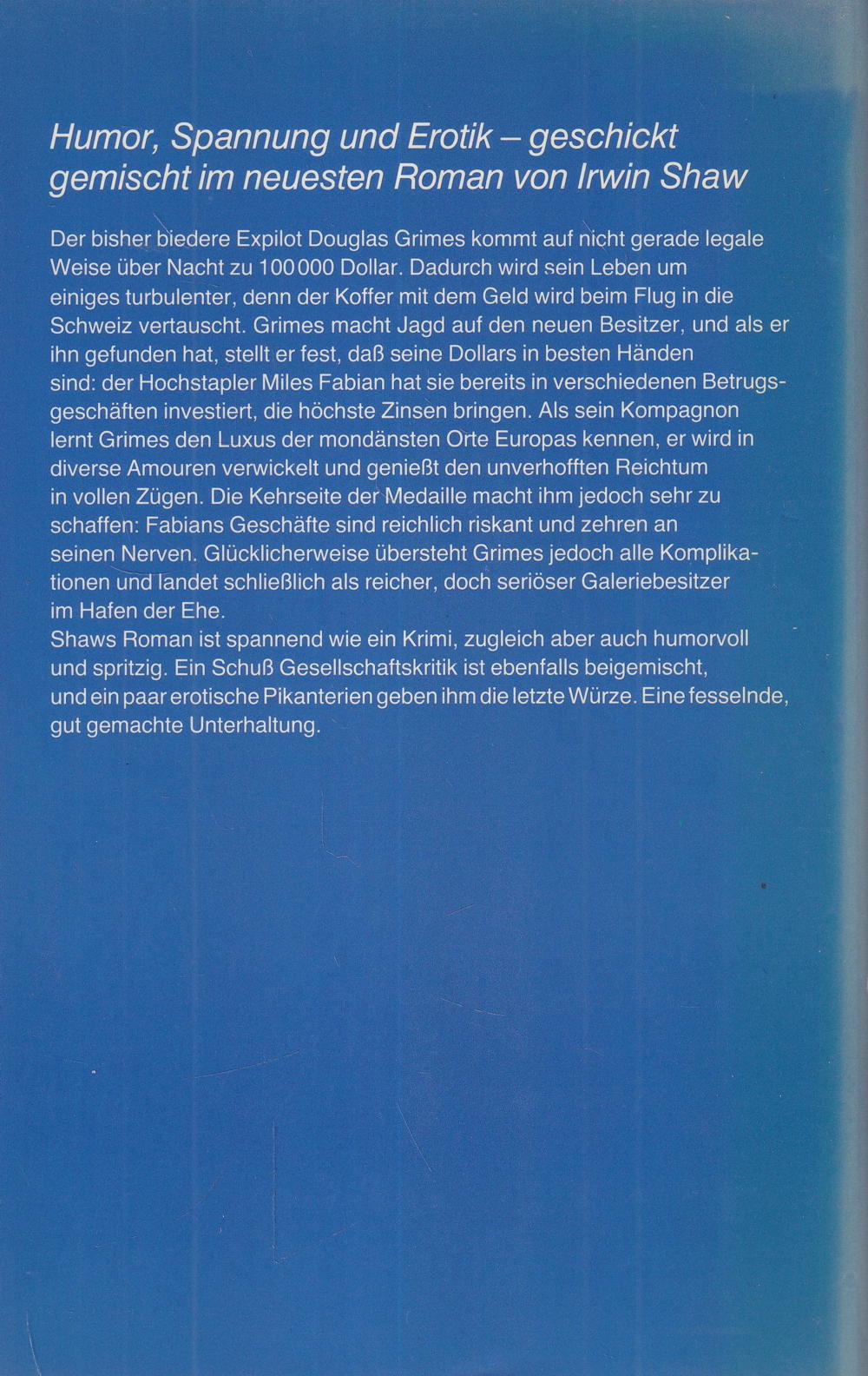 Shaws Roman ist spannend wie ein Krimi, zugleich aber auch humorvoll und spritzig. Ein Schuss Gesellschaftskritik ist ebenfalls beigemischt, und ein paar erotische Pikanterien geben ihm die letzte Würze. Eine fesselnde, gut gemachte Unterhaltung.