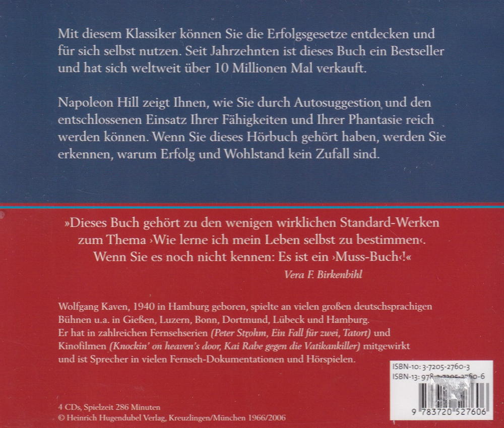 Napoleon Hill zeigt Ihnen, wie Sie durch Autosuggestion und den entschlossenen Einsatz Ihrer Fähigkeiten und Ihrer Phantasie reich werden können. Wenn Sie dieses Hörbuch gehört haben, werden Sie erkennen, warum Erfolg und Wohlstand kein Zufall sind.