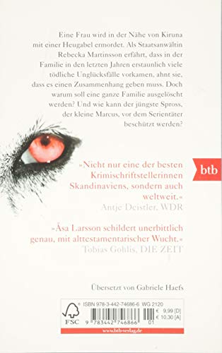 Eine Frau wird in der Nähe von Kiruna mit einer Heugabel ermordet. Zunächst wird ihr Liebhaber verdächtigt. Als Staatsanwältin Rebecka Martinsson jedoch erfährt, dass in der Familie in den letzten Jahren erstaunlich viele tödliche Unglücksfälle vorkamen, ahnt sie, dass es einen Zusammenhang geben muss. Doch warum soll eine ganze Familie ausgelöscht werden? Und wie kann der jüngste Spross, der kleine Marcus, vor dem Serientäter beschützt werden?