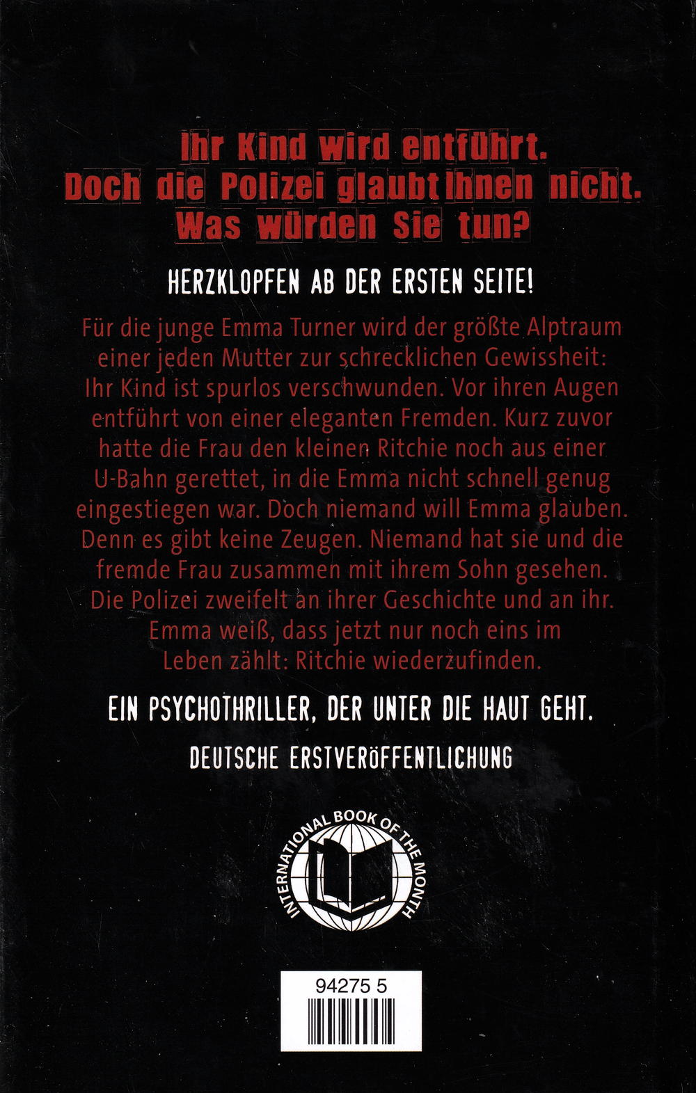 Ihr Kind ist spurlos verschwunden. Vor ihren Augen entführt von einer eleganten Fremden. Kurz zuvor hatte die Frau den kleinen Ritchie noch aus einer U-Bahn gerettet, in die Emma nicht schnell genug eingestiegen war. Doch niemand will Emma glauben.