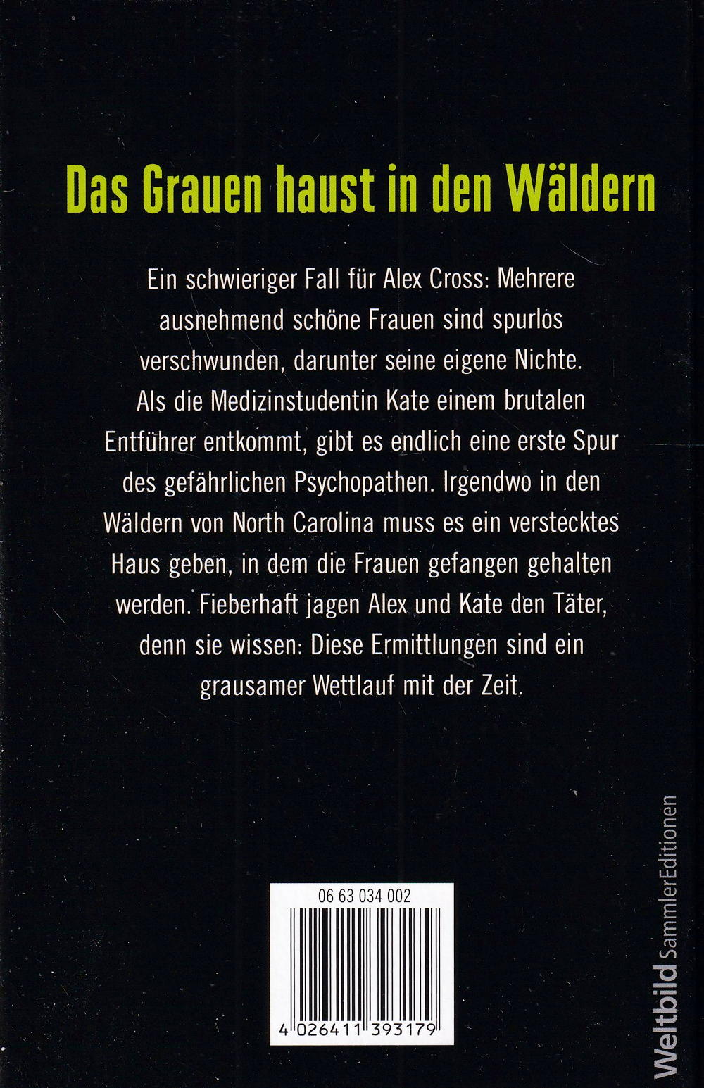 Ein schwieriger Fall für Alex Cross: Mehrere ausnehmend schöne Frauen sind spurlos verschwunden, darunter seine eigene Nichte. Als die Medizinstudentin Kate einem brutalen Entführer entkommt, gibt es endlich eine erste Spur des gefährlichen Psychopathen. Irgendwo in den Wäldern von North Carolina muss es ein verstecktes Haus geben, in dem die Frauen gefangen gehalten werden. Fieberhaft jagen Alex und Kate den Täter, denn sie wissen: Diese Ermittlungen sind ein grausamer Wettlauf mit der Zeit.
