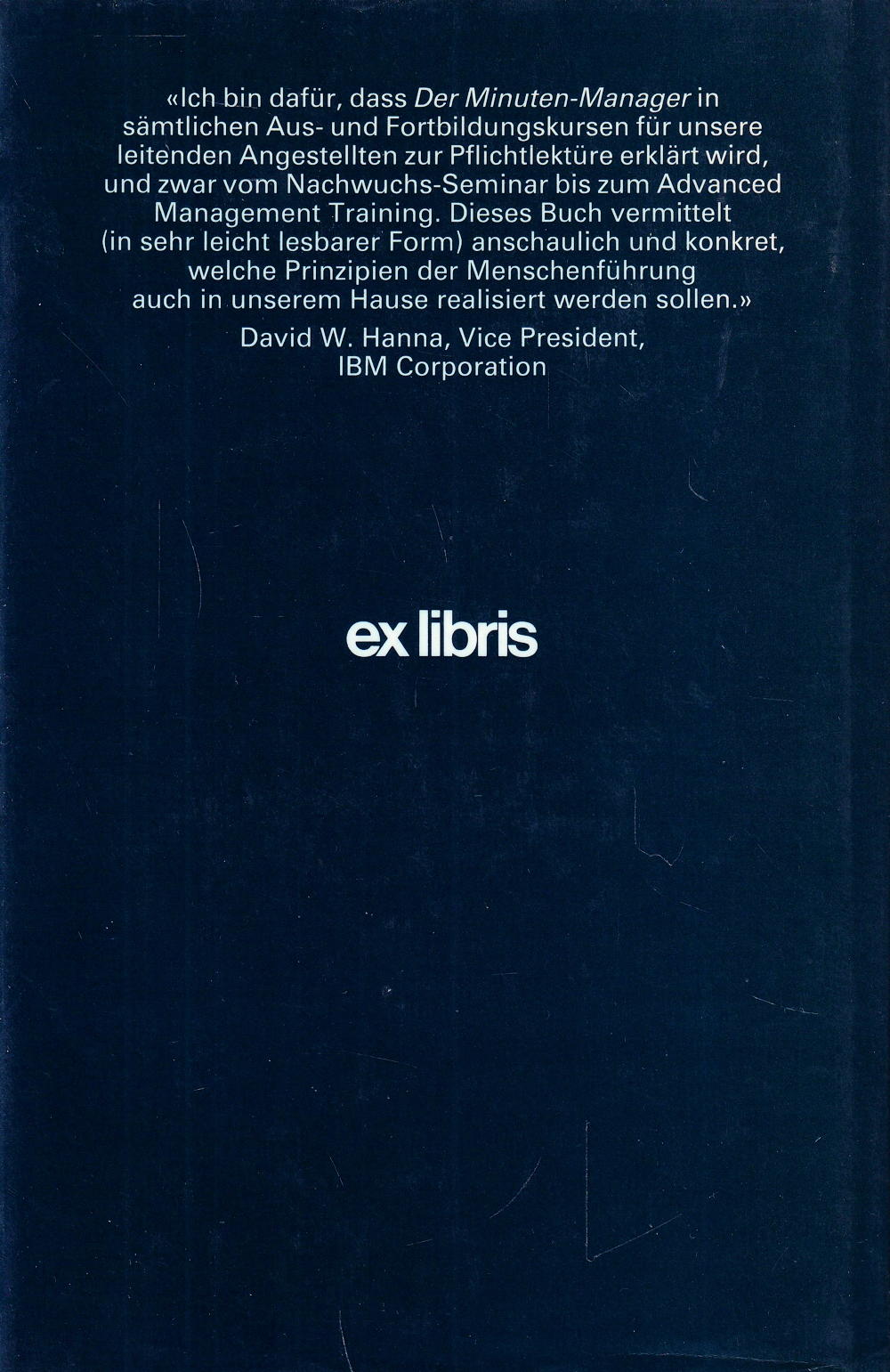 «Ich bin dafür, dass Der Minuten-Manager in sämtlichen Aus- und Fortbildungskursen für unsere leitenden Angestellten zur Pflichtlektüre erklärt wird, und zwar vom Nachwuchs-Seminar bis zum Advanced Management Training. Dieses Buch vermittelt (in sehr leicht lesbarer Form) anschaulich und konkret, welche Prinzipien der Menschenführung auch in unserem Hause realisiert werden sollen. »