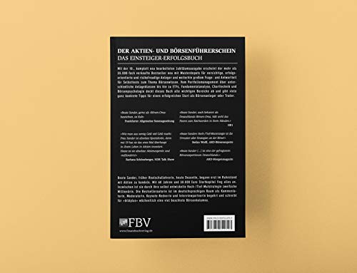 Mit der 10. , komplett neu bearbeiteten Auflage erscheint der mehr als 25. 000-fach verkaufte Bestseller neu mit Musterdepots für erfolgsorientierte Anleger (Aktien und EFTs) und weiterhin grossem Frage- und Antwortteil für Selbsttests zum Thema Börsenwissen. Vom Portfolio-Management über unterschiedliche Anlageklassen bis hin zu ETFs, Fundamentalanalyse, Charttechnik und Börsenpsychologie deckt »Der Aktien- und Börsenführerschein« von Beate Sander alle wichtigen Bereiche ab und gibt viele ganz konkrete Tipps für einen erfolgreichen Start als Börsenanleger oder Trader.