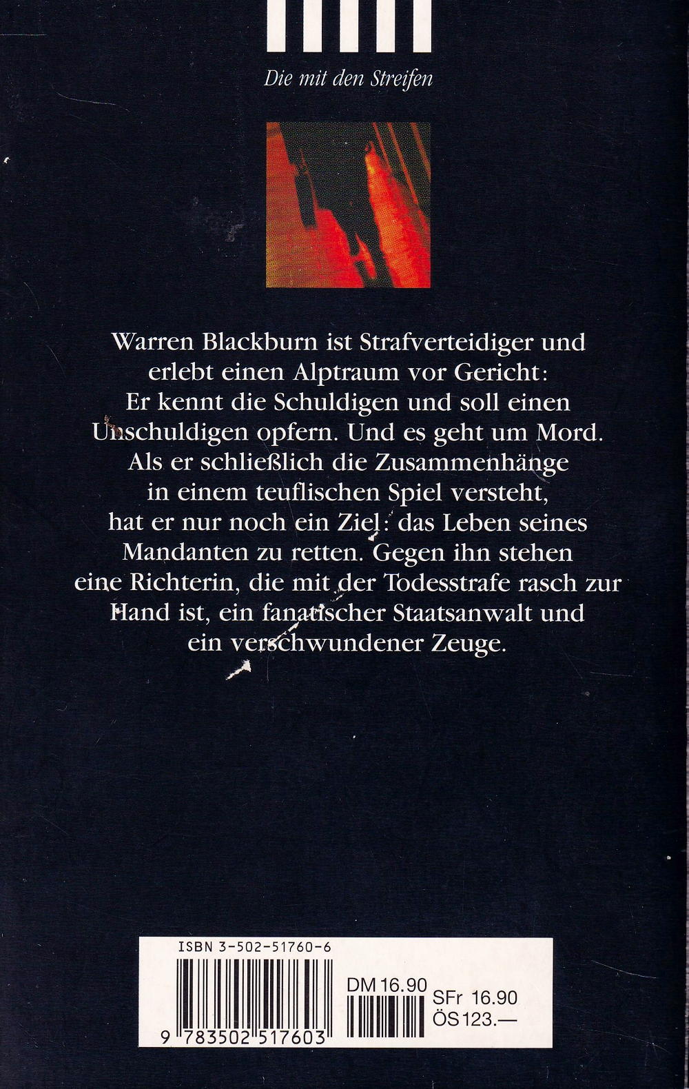 Als er schliesslich die Zusammenhänge in einem teuflischen Spiel versteht, hat er nur noch ein Ziel: das Leben seines Mandanten zu retten. Gegen ihn stehen eine Richterin, die mit der Todesstrafe rasch zur Hand ist, ein fanatischer Staatsanwalt und ein verschwundener Zeuge.