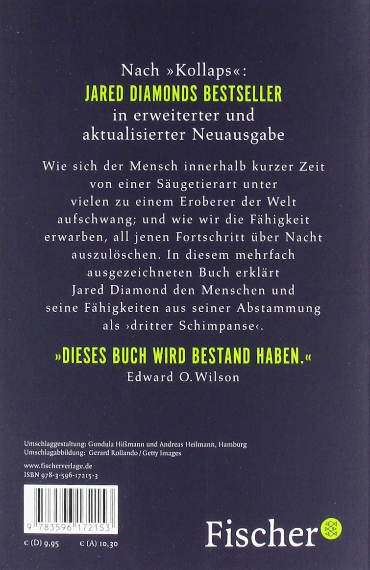 In diesem mehrfach ausgezeichneten Buch erklärt Jared Diamond den Menschen und seine Fähigkeiten aus seiner Abstammung als 'dritter Schimpanse'.