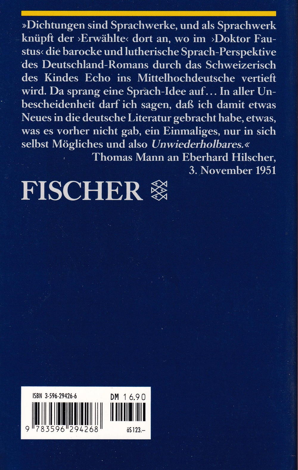 Die Legende vom Papst Gregorius ist Thomas Mann früher, als er selbst erinnerte, bekannt geworden: Im Wintersemester 1894/1895 als Hospitant in den Vorlesungen des Münchner Germanisten Wilhelm Hertz über Hartmann von Aue. Auf diesen im Inzest gezeugten "christlichen Ödipus" mit der "Kraft der Reue zur Vergebung jeglicher Sünde" stiess er dann wieder, auf der Suche nach einem Stoff "zur Verarbeitung als groteske Puppenspiele" für seinen Helden Adrian Leverkühn, "in dem alten Buch 'Gesta Romanorum'"; erst da, im Oktober 1945, wurde er sich, den Legendenstoff im entstehenden Doktor Faustus zusammenfassend, des Reizes der Eigengestaltung bewusst; der Faust-Tragödie sollte nach antikem Beispiel das Satyrspiel - "dieses in Gott vergnügte Büchlein" - folgen.