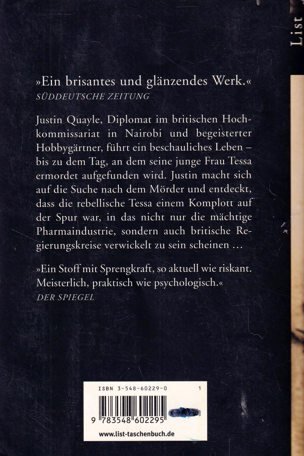 Mitten in der Wüste von Kenia, am Ufer des Turkanasees, wird die junge schöne Tessa Quayle ermordet aufgefunden. Ihr Begleiter und angeblicher Geliebter, der afrikanische Arzt Arnold Bluhm, ist spurlos verschwunden. Tessas Ehemann, ein aufstrebender Diplomat bei der britischen Botschaft in Nairobi, macht sich auf die Suche nach dem Mörder seiner Frau. Bald erkennt er, dass die rebellische Tessa einem Komplott auf der Spur war und damit nicht nur die mächtige Pharmaindustrie und eine obskure afrikanische Hilfsorganisation gegen sich aufbrachte, sondern auch den Unmut höherer britischer Regierungskreise auf sich zog. Verfolgt und auf sich allein gestellt, dringt Justin immer tiefer in das Dickicht einer gross angelegten Verschwörung ein.