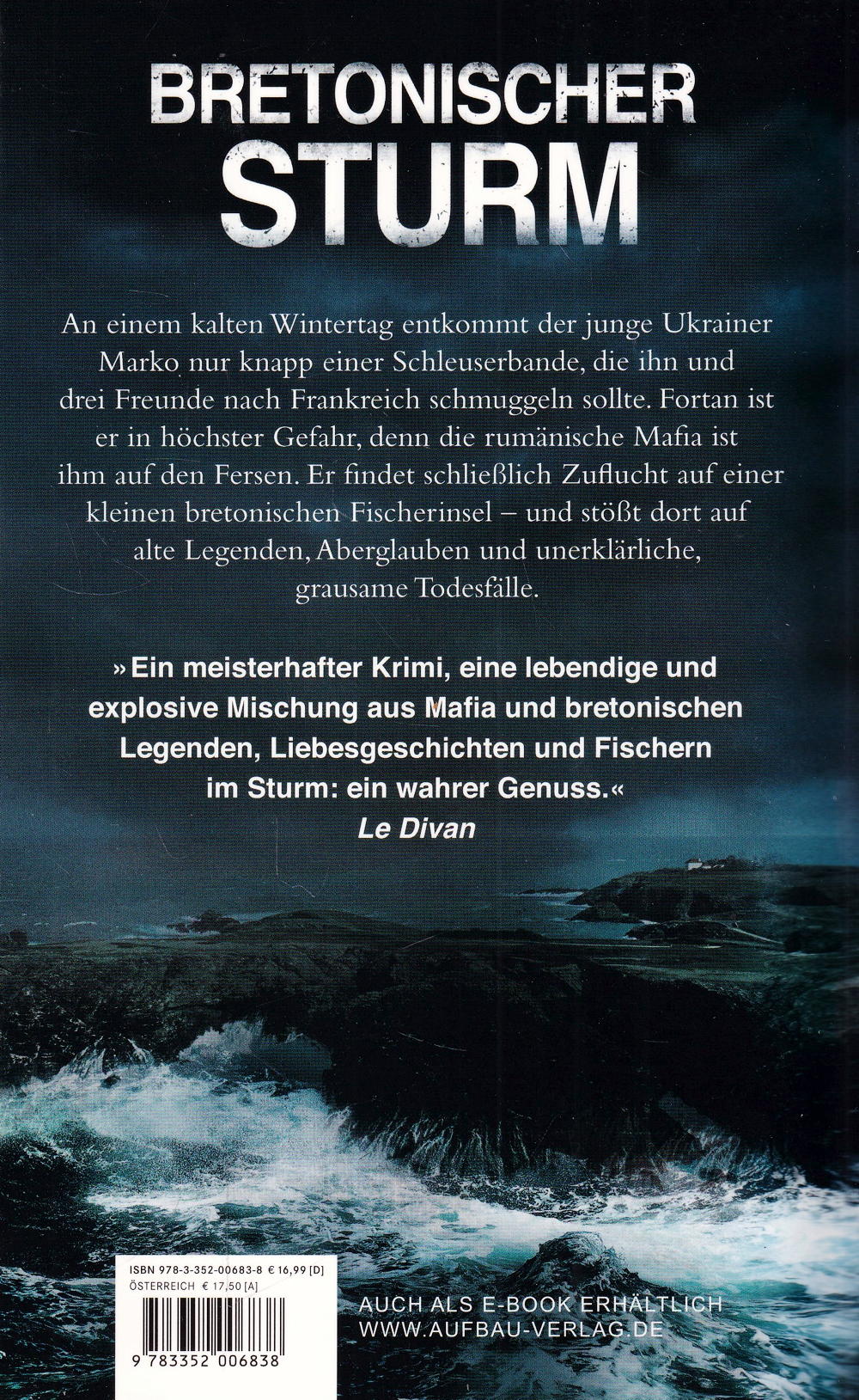 Bretonischer Sturm. An einem kalten Wintertag entkommt der junge Ukrainer Marko nur knapp einer Schleuserbande, die ihn und drei Freunde nach Frankreich schmuggeln sollte. Fortan ist er in höchster Gefahr, denn die rumänische Mafia ist ihm auf den Fersen. Er findet schliesslich Zuflucht auf einer kleinen bretonischen Fischerinsel – und stösst dort auf alte Legenden, Aberglauben und unerklärliche, grausame Todesfälle...
