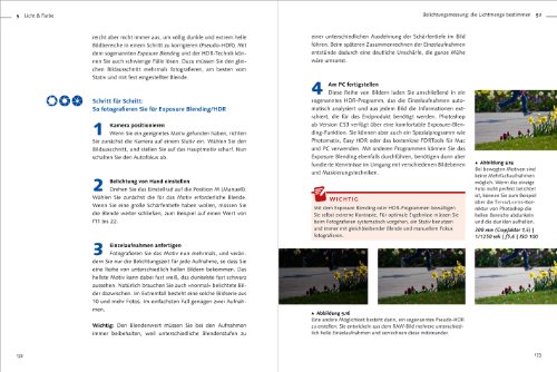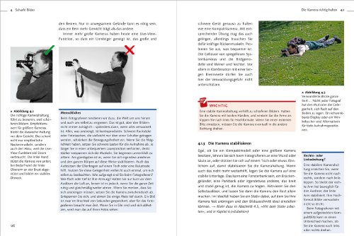 Darüber hinaus bekommen Sie Anregungen für Ihre eigene Fotografie, indem sämtliche grossen Fotogenres und ihre fotografischen Regeln vorgestellt werden. Viele Schritt-für-Schritt-Anleitungen werden Ihnen ausserdem helfen, die Fotopraxis zu meistern. Sie lernen so genau die Fototechniken kennen, die Sie brauchen, um erfolgreich zu fotografieren.