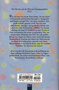 ELLE Was soll man von einem Vater halten, der mit seiner Lebensfreude und Spontaneität jegliche Kategorien und Regeln sprengt? Der von seinen Kindern »Der große Zubial <genannt wird? Der frei und unbeschwert, zwanglos und gnadenlos ehrlich sein Leben wie einen Drahtseilakt vollführt? An dessen Todestag sich seine 30 Geliebten in einer Kirche in Paris versammeln, um seiner zu gedenken? Der, um seinem Sohn Alexandre den Preis für jede gelebte Minute vor Augen zu führen, einen unterschriebenen Blankoscheck zwischen den Seiten des Telefonbuchs in einem Telefonhäuschen versteckt und jubelt: »Wenn jemand diesen Scheck findet, sind wir ruiniert! Genießen wir also jetzt das Leben! «
