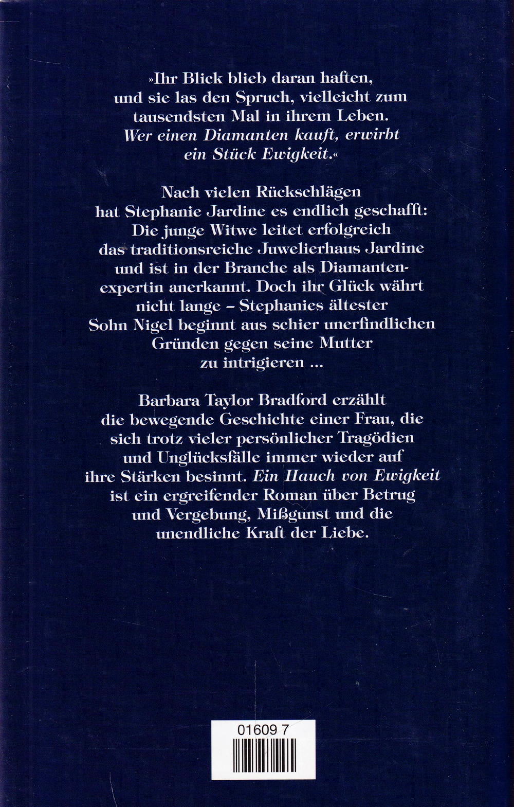 Barbara Taylor Bradford erzählt die bewegende Geschichte einer Frau, die sich trotz vieler persönlicher Tragödien und Unglücksfälle immer wieder auf ihre Stärken besinnt. Ein Hauch von Ewigkeit ist ein ergreifender Roman über Betrug und Vergebung, Missgunst und die unendliche Kraft der Liebe.